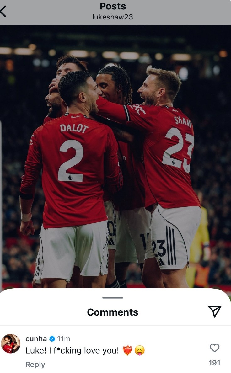 2025-10-26 16:08:04卢克-肖社媒晒庆祝进球合影,库尼亚评论:卢克,我太TM爱你了 !